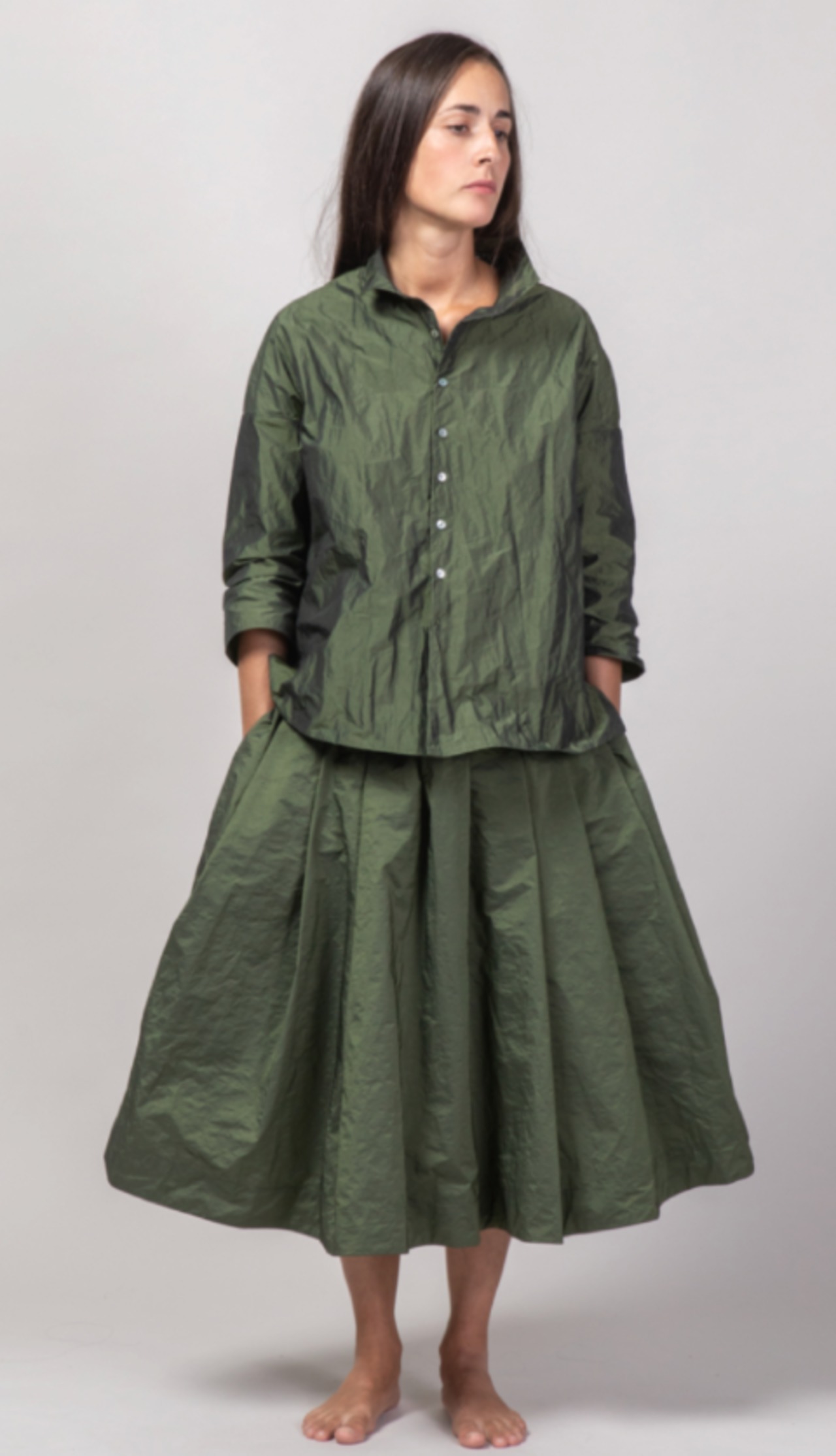 イタリアの小さな工場でつくられたお洋服は、現代的でミニマムなデザインで長くき続けられるものばかり。色使いもとても上手く、上質で優しい素材を使い、心地よく、永く、お召しいただけるものたちばかりです。